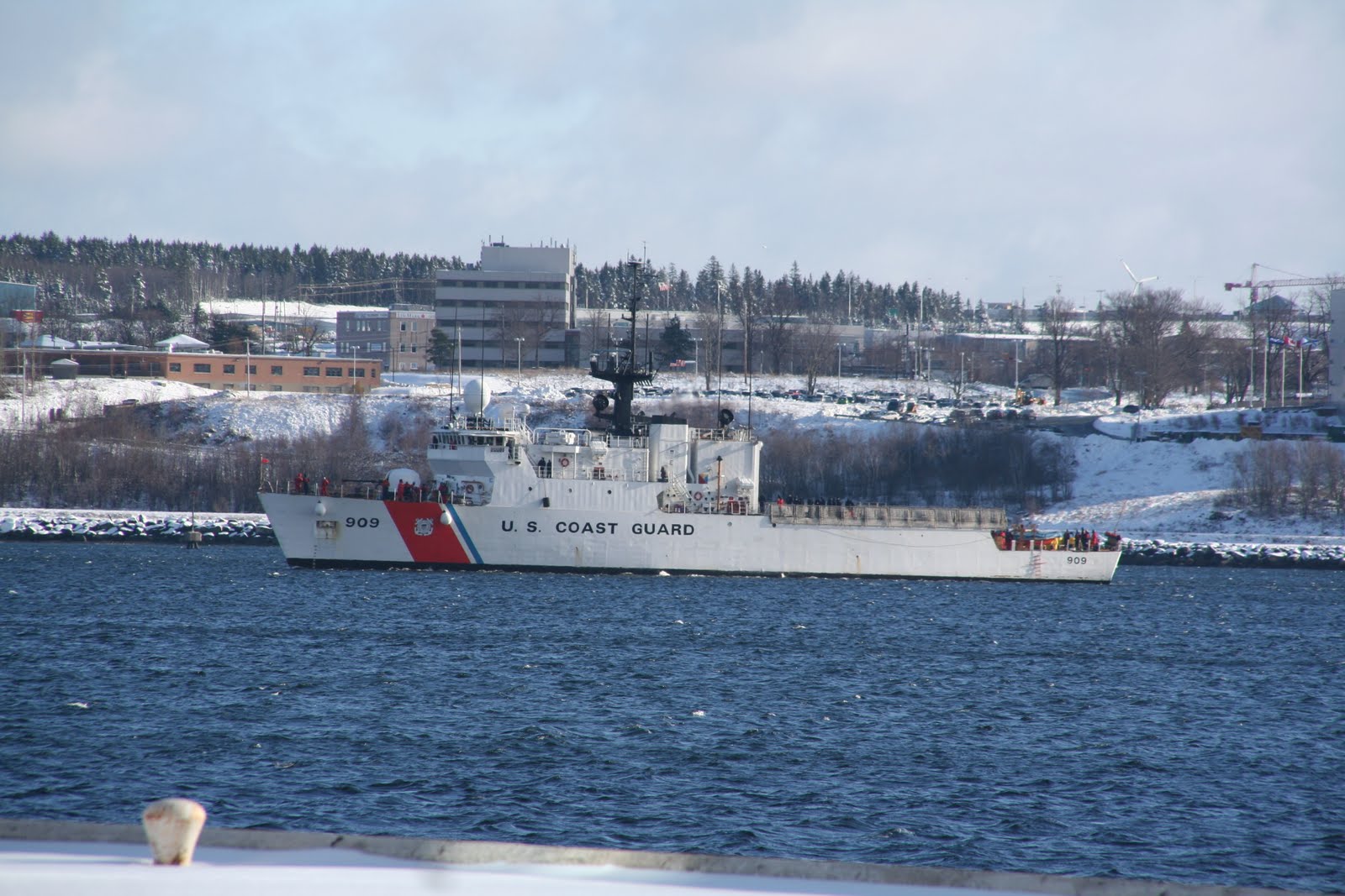 She is A Bay Class (all class members are named for Bays) Icebreaking tug, based out of Rockland Maine. She arrived in fog, and Tied up at pier NB (AKA November Bravo, Navy B).