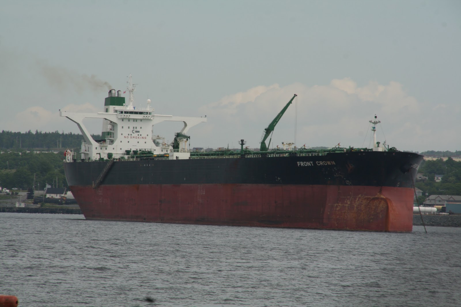 The VLCC (Very Large Crude Carrier)Front Crown at anchorage 1 for bunkers. She is Very Clearly empty. At 311,176dwt, shes big, and more then double the size of Halifax Regular Heather Knutsen which comes in at 148,644dwt.