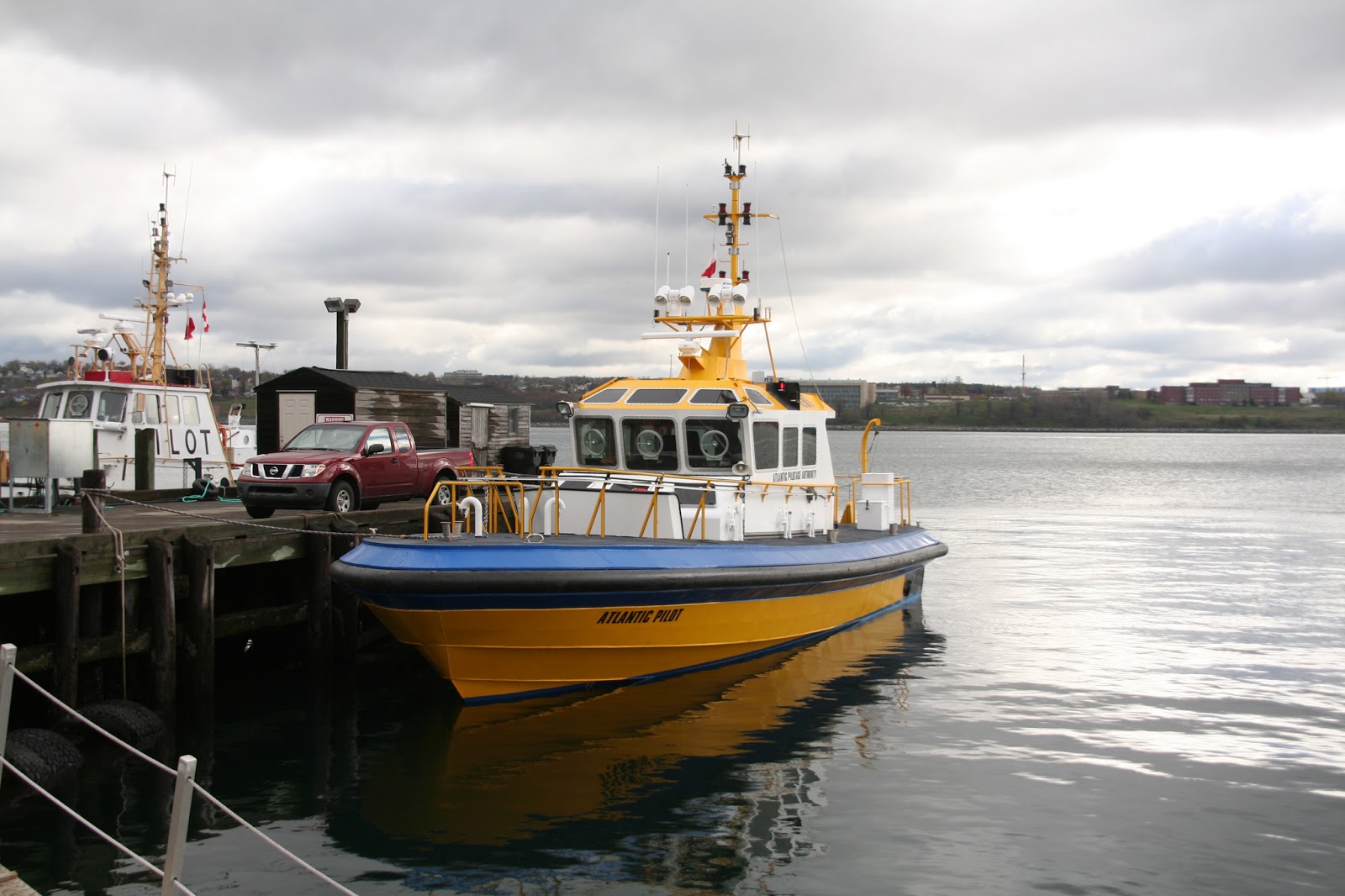 The Atlantic Pilotage Authorities vessel “Atlantic Pilot” is currently tied up at the APA Wharf in Halifax. A simalar design to Chubucto Pilot, Atlantic Pilot was built by A.F. Theriault & Sons Ltd, in Meteghan River, NS. She was christened in Halifax on November 15th, 2007, and is normally staioned with her sister vessel “Avalon Pilot” in Placentia Bay, NL